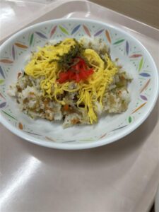 アルク大津下阪本では、2月3日節分の日ということでちらし寿司が出てきました。