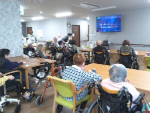 カラオケはレクリエーションの要素はもちろん、大きな声を出す事で心肺機能や口腔内のリハビリにも繋がります。