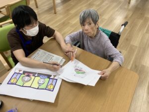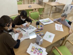 完成した塗り絵はフロアに飾っていますので、施設に来られた際は是非皆さんの作品をご覧下さい!
